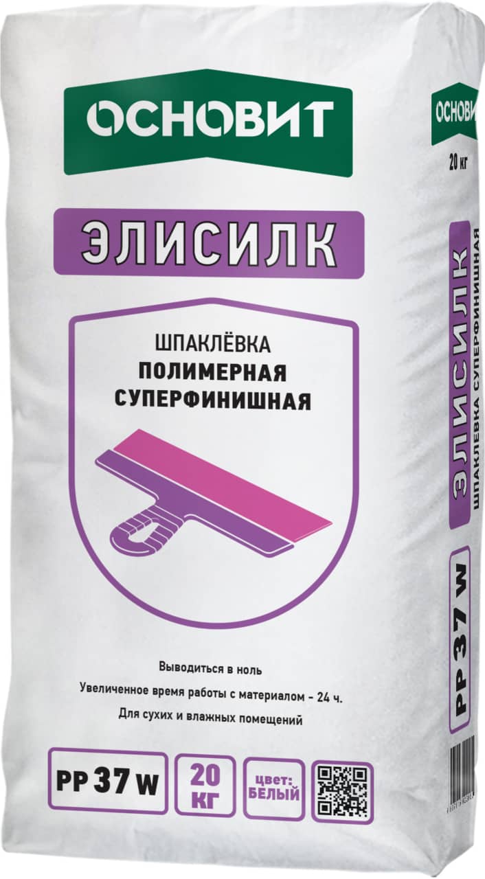 Шпаклевка ОСНОВИТ ЭЛИСИЛК PP37 W предназначена для окончательного выравнивания стен и потолков в сухих и влажных помещениях. Рекомендуется для устранения мельчайших дефектов поверхности.