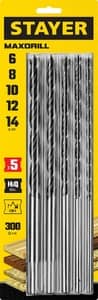 STAYER Maxdrill, 5 шт: 6-8-10-12-14 х 300 мм, набор сверл спиральных по дереву (2943-300-H5)