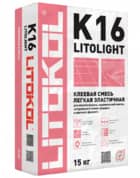 Литокол LITOLIGHT K16 Клеевая смесь "Легкая" для керамогранита, эласт, мороз серый 15кг
