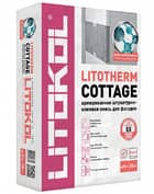 LITOTHERM COTTAGE предназначен для приклеивания плит утеплителя и устройства, армированного щелочестойкой стеклосеткой, базового штукатурного слоя по всем допустимым к применению в СФТК утеплителям, для последующего нанесения декоративных штукатурных составов и других отделочных материалов, совместимых с СФТК.