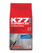 SUPERFLEX K77 — цементный (С) клей с улучшенными техническими характеристиками (2), тиксотропный, с повышенной стойкостью к сползанию (Т), с увеличенным открытым временем (Е), эластичный (S1), относится к классу C2 TE S1 согласно классификации Европейских Норм EN 12004/12002 и ГОСТ Р 56387.
