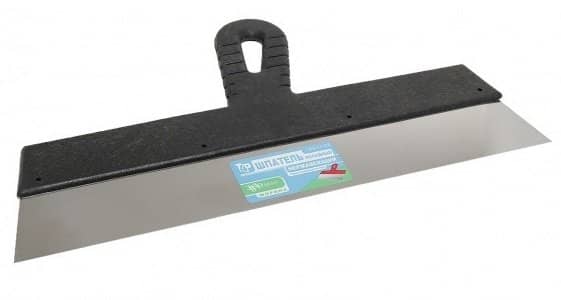 Служит для нанесения и разравнивания шпатлевки. Используется во время проведения отделочных работ. Инструмент обладает полотном из нержавеющей стали и пластмассовой рукояткой.