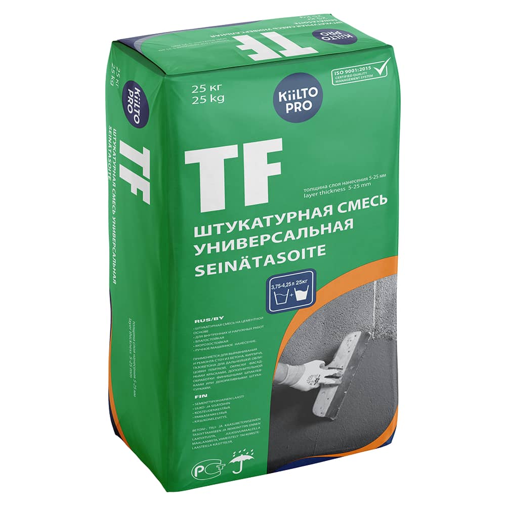 Универсальная, влаго- и морозостойкая штукатурная смесь на цементной основе. Цементная штукатурка Kiilto TF применяется для выравнивания и ремонта стен из бетона, кирпича, газобетона при наружных и внутренних работах.