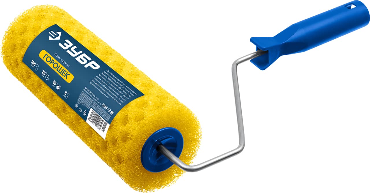 ЗУБР ГОРОШЕК, 80 х 240 мм, бюгель 6 мм, структурный поролон, для водоэмульсионных, акриловых красок и эмали, малярный валик (0369-24)