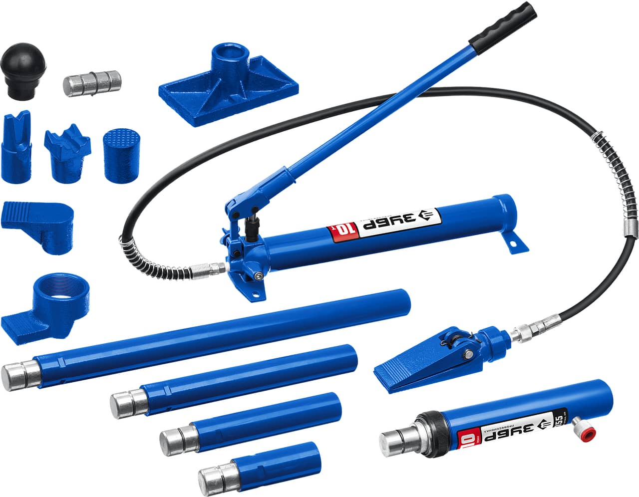 ЗУБР 10 т, гидравлический набор для правки кузова в пластиковом кейсе, Профессионал (43035-10)