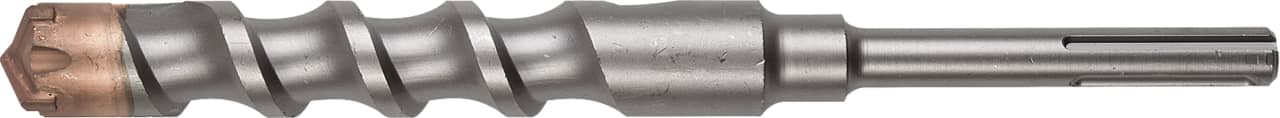 - Специальная крестообразная геометрия наконечника предотвращает подклинивание и смещение бура при работе в сверхпрочных материалах.