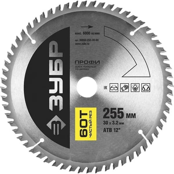 36852-255-30-60 Диск пильный ЗУБР "ПРОФИ" "Чистый рез" по дереву, 60Т, 255х30мм