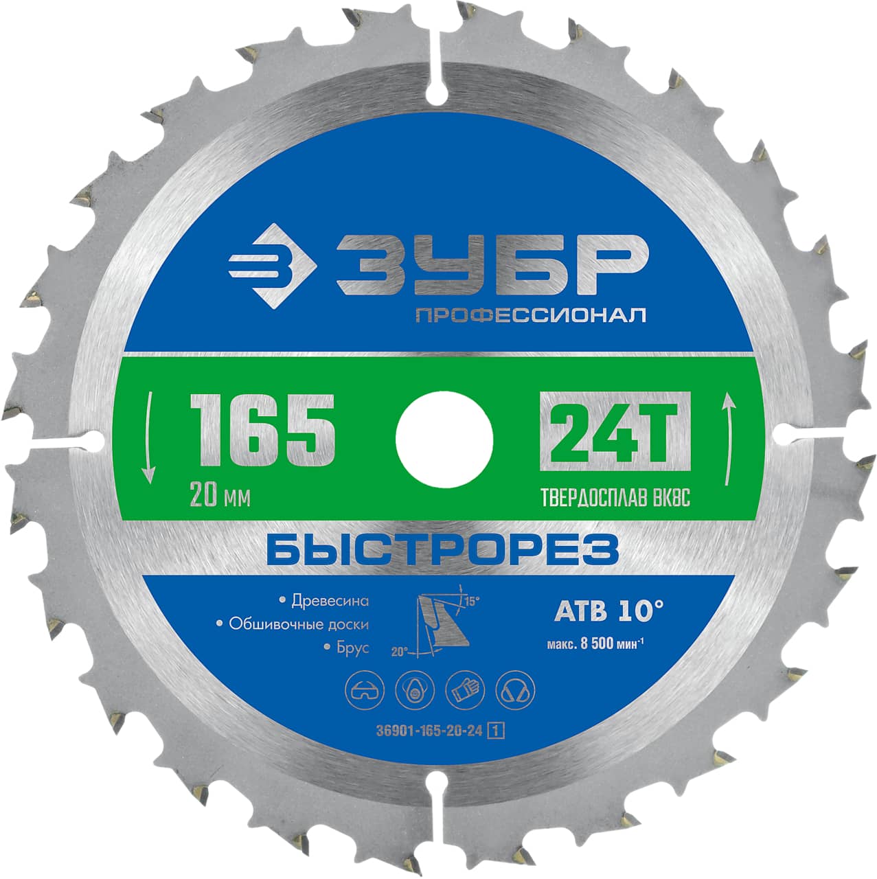 ЗУБР Быстрорез, 165 x 20 мм, 24Т, пильный диск по дереву, Профессионал (36901-165-20-24)