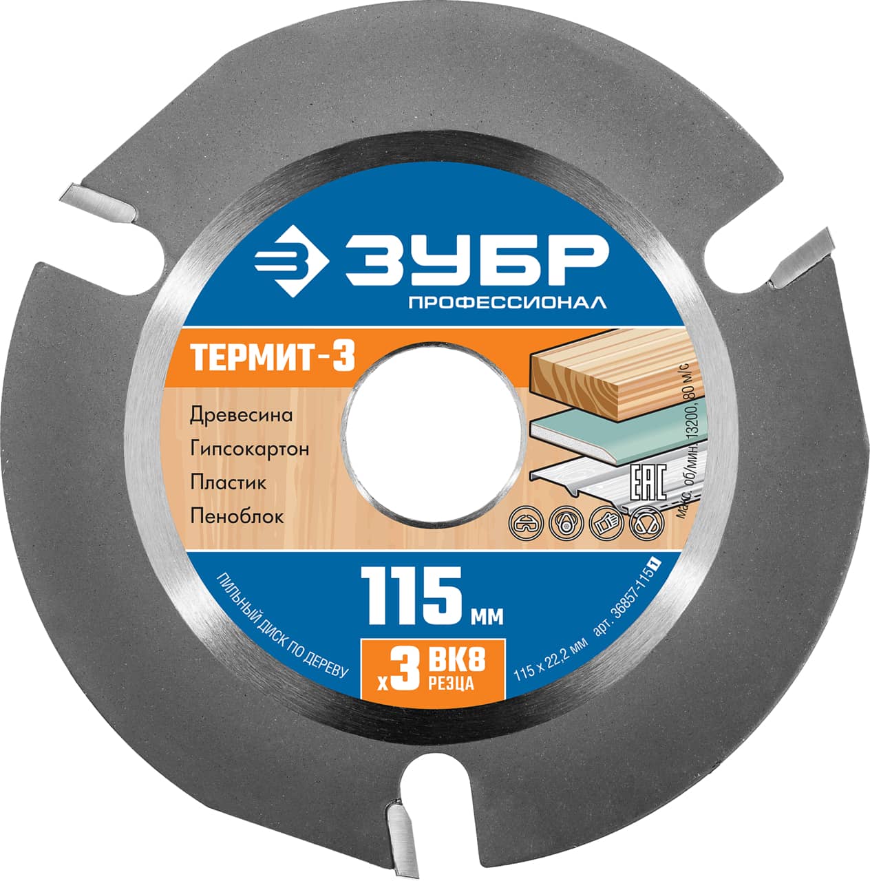 ЗУБР Термит-3 115х22,2мм, 3 резца, диск пильный по дереву для УШМ, усиленный