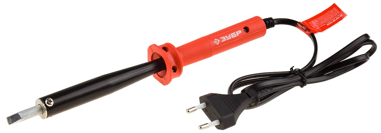 Электропаяльник ЗУБР "МАСТЕР" с пластиковой рукояткой и долговечным жалом, форма клин, 100Вт