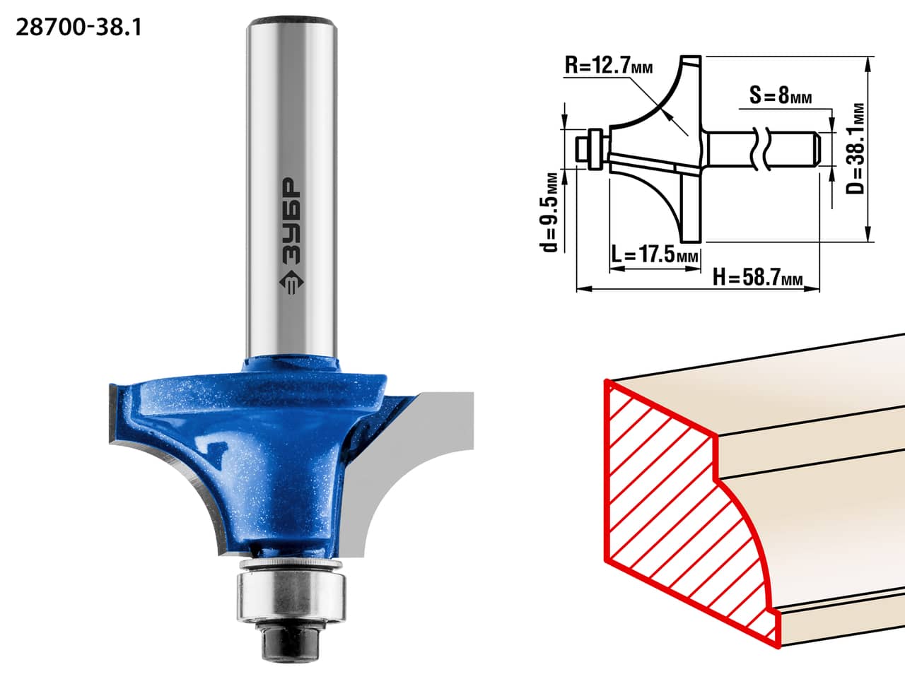 ЗУБР 38.1 x 17.5 мм, радиус 12.7 мм, фреза кромочная калевочная №1, Профессионал (28700-38.1)