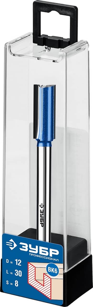 ЗУБР 12 x 30 мм, хвостовик 8 мм, фреза пазовая прямая с нижними подрезателями, Профессионал (28755-12-30)