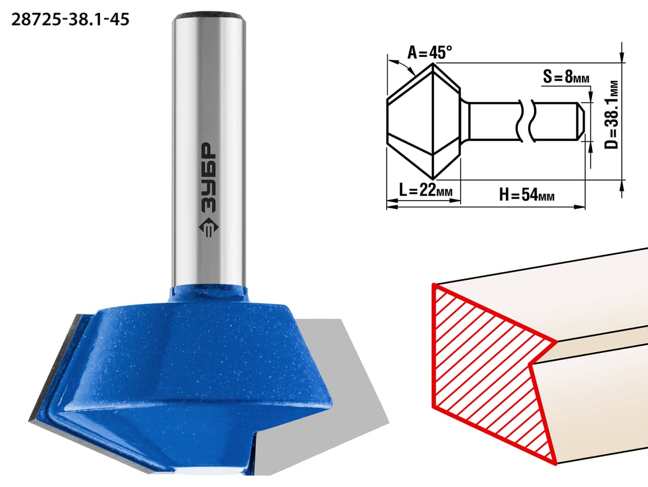 ЗУБР 38.1 x 22 мм, фреза кромочная конусная, Профессионал (28725-38.1-45)