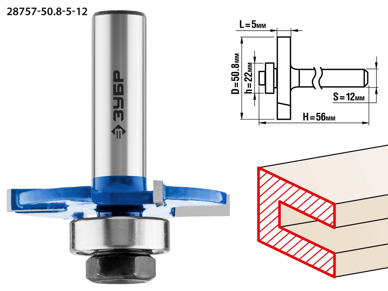 ЗУБР 50.8 x 5 мм, хвостовик 12 мм, фреза горизонтально-пазовая, Профессионал (28757-50.8-5-12)