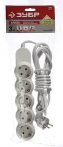 ЗУБР, М500 ПВС 3х1 1.5 м, 5 гн. Бытовой удлинитель (55058-1.5)
