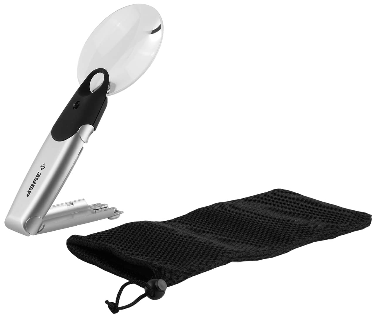 - Специальная конструкция позволяет использовать лупу как в сложенном состоянии, так и в раскрытом