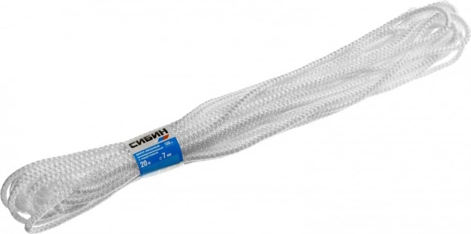 СИБИН 7 мм, 20 м, вязаный, с сердечником, белый, полипропиленовый шнур (50257)