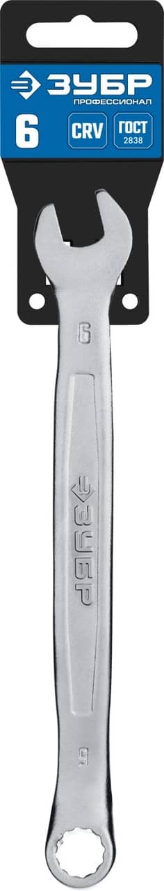 ЗУБР 6 мм, комбинированный гаечный ключ, Профессионал (27087-06)