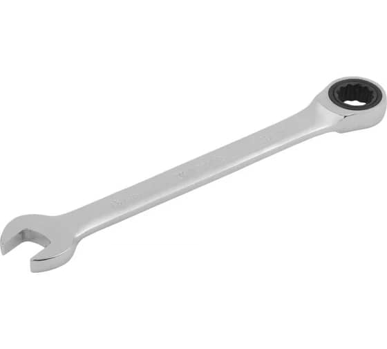 Комбинированный трещоточный ключ 13мм Kraftool 27230-13_z01 - прочный стальной ручной инструмент для работы с шестигранным крепежом при обслуживании узлов и агрегатов автомобилей, а также сборке или демонтаже различных конструкций. Ключ имеет защитное хромовое покрытие и отполированную, зеркальную поверхность. Соответствует стандарту DIN 3113.