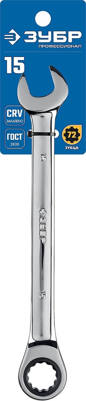 ЗУБР 15 мм, комбинированный трещоточный гаечный ключ, Профессионал (27074-15)