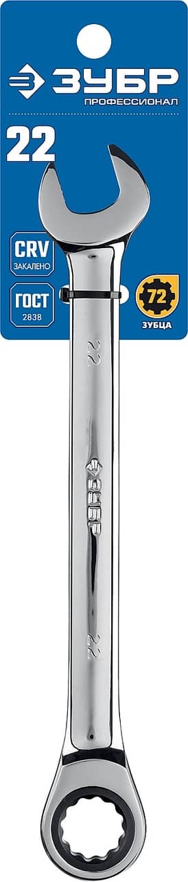 ЗУБР 22 мм, комбинированный трещоточный гаечный ключ, Профессионал (27074-22)