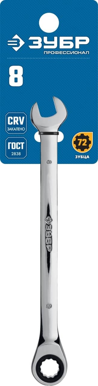 ЗУБР 8 мм, комбинированный трещоточный гаечный ключ, Профессионал (27074-08)