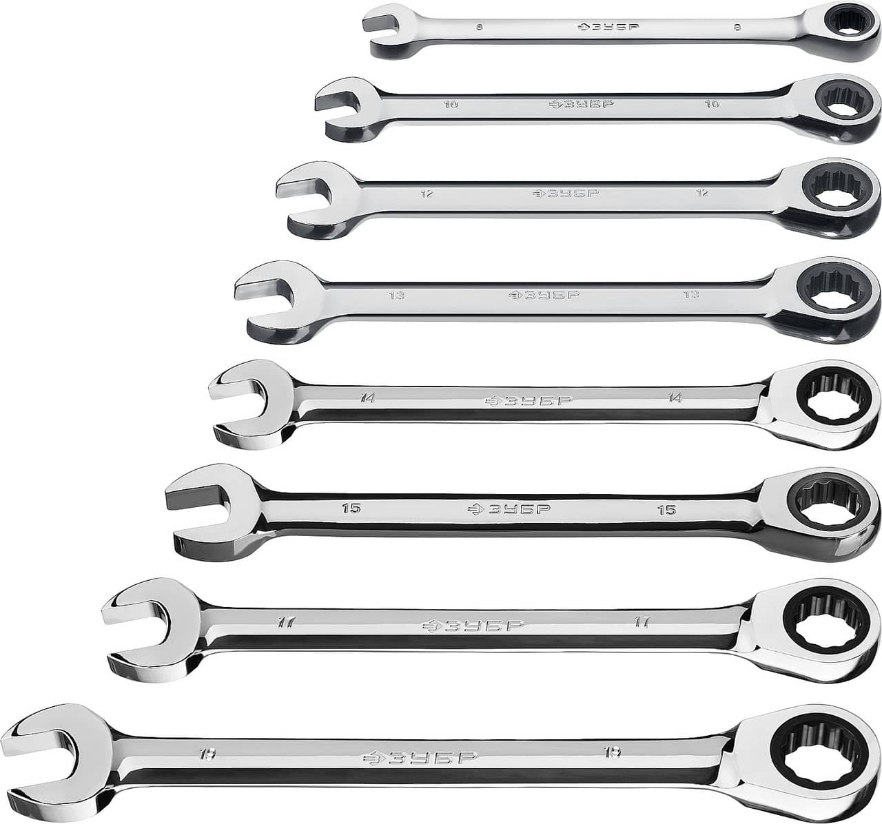 ЗУБР 8 шт, 8 - 19 мм, набор комбинированных трещоточных гаечных ключей, Профессионал (27074-H8)