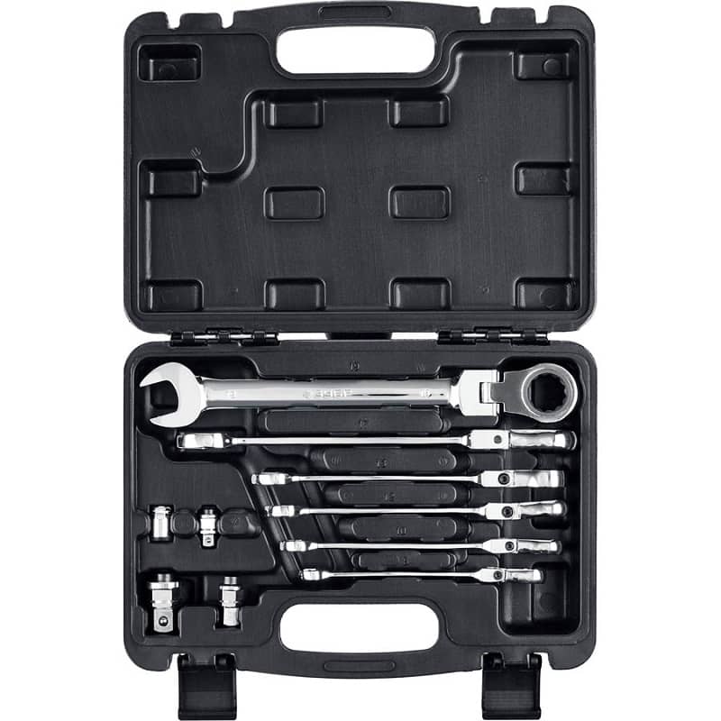 Набор комбинированных гаечных ключей трещоточных шарнирных с адаптерами, 10 шт, 8 - 19 мм, ЗУБР