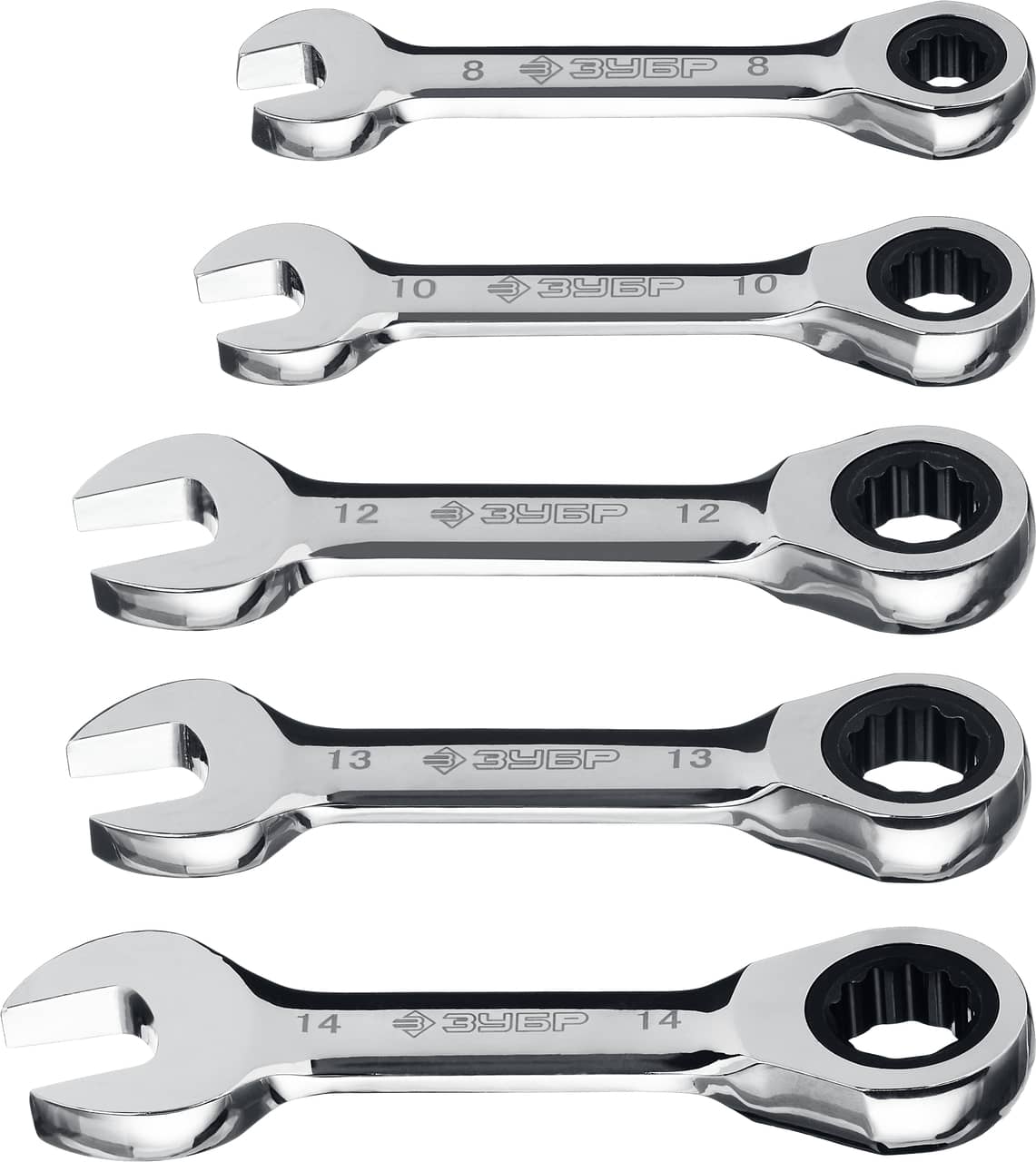 ЗУБР 5 шт, 8 - 14 мм, набор укороченных трещоточных гаечных ключей, Профессионал (27103-H5)