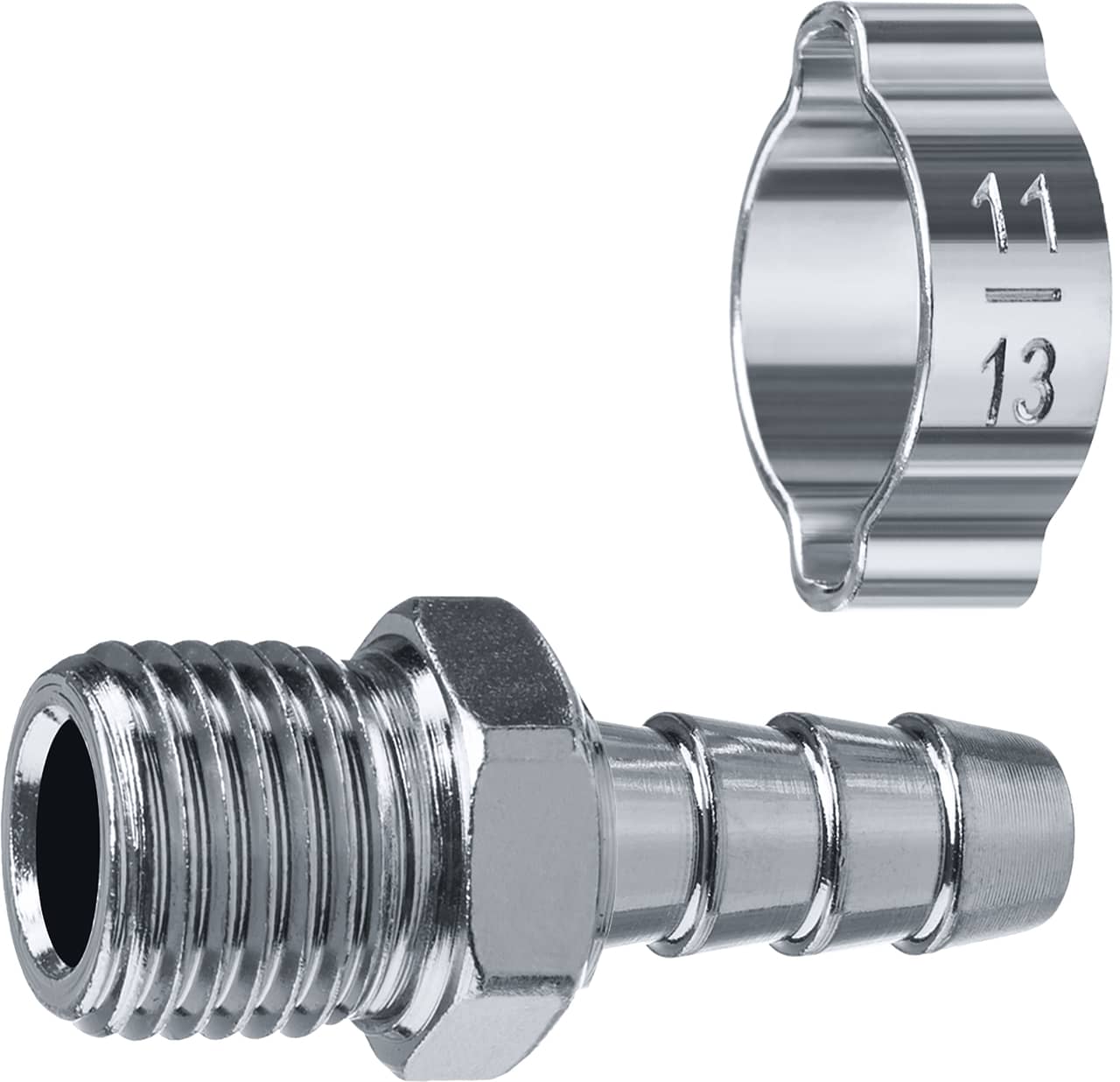 ЗУБР штуцер ″елочка″, 8 мм - 1/4″M, переходник с обжимным хомутом, Профессионал (64924-1/4-08)