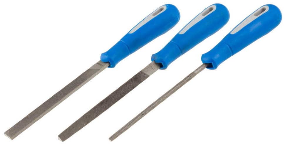 | 16550-15-Н3 | Набор напильников 150 мм с двухкомпонентной ручкой, №2: плоский, трехгранный, круглый |
