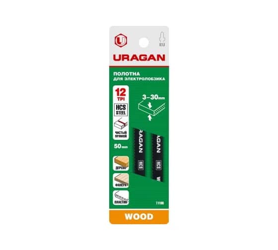 Пилки для лобзика URAGAN ‒ прочная оснастка из стали HCS. Благодаря содержанию углерода повышается износостойкость материала. Поэтому пилки выдерживают высокие нагрузки и меньше изнашиваются при постоянном использовании. Толщина рабочей части увеличена. Это улучшает устойчивость изделий к излому, обеспечивает чистоту и ровную геометрию пропила.