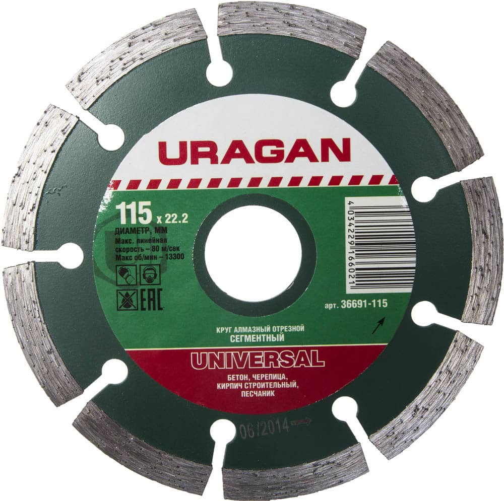 Круг отрезной алмазный URAGAN сегментный, сухая резка, 22,2х115мм