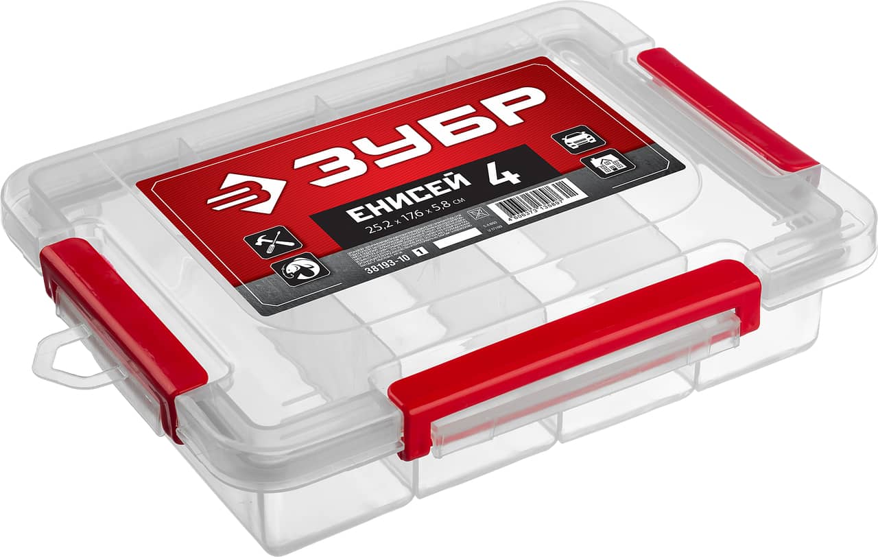 ЗУБР ЕНИСЕЙ-4, 252 х 176 х 58 мм, (10″), пластиковый органайзер с 4 ячейками (38193-10)