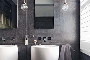 Плитка — универсальный отделочный материал с отличными техническими характеристиками. Ей можно облицевать пол и стены, оформить «мокрые зоны». Плитка под бетон в интерьере всегда смотрится эффектно.