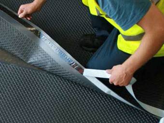 Оклеечная гидроизоляция представляет собой «ковер», состоящий из нескольких слоев битумно-полимерных, полимерных, битумных материалов. Все материалы должны быть выполнены из гнилостойких компонентов. При этом необходимо плотно заварить швы Перед выполнением работ по гидроизоляции пол должен быть очищен, высушен, прогрунтован. После подготовительных мероприятий на поверхность наносится мастика слоем в 1,5 мм. Сверху раскатываются гидроизоляционные рулоны. Адгезия материала достигается при помощи клеящих составов на основе растворителей и методом нагревания и сваривания очищенных швов. Количество слоев гидроизоляции зависит от подверженности полов воздействию влаги.