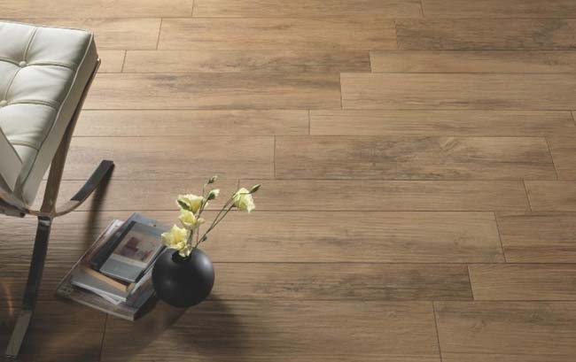 Будучи уложенной, напольная (настенная) плитка из керамогранита «под дерево» на взгляд не отличается от настоящего деревянного пола или даже паркета. Причем имитируется и цвет определенной породы и характерный рисунок древесины, и фактура обработанного дерева и даже кладка плашек.