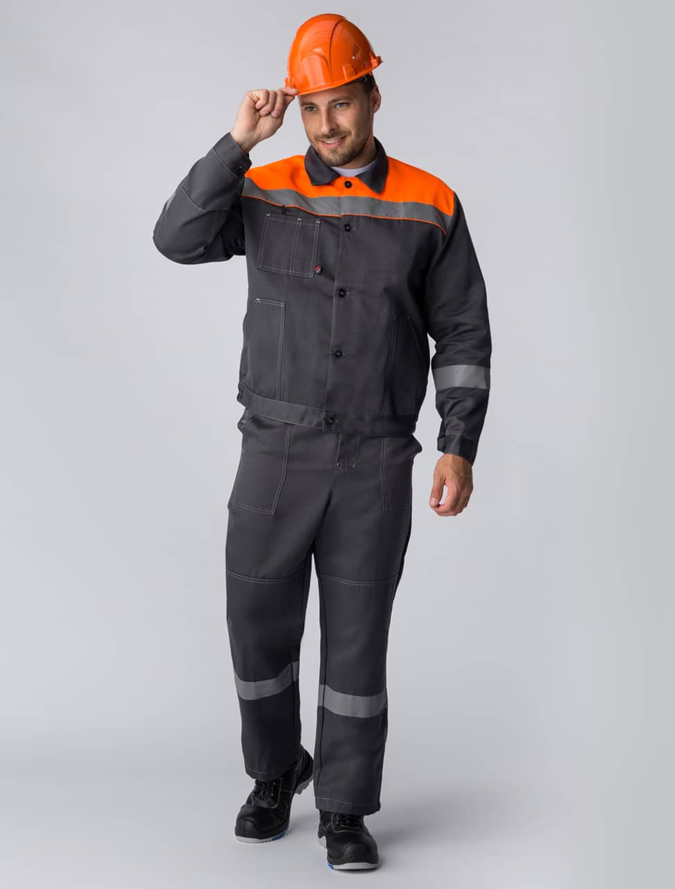 Рабочий костюм «Легион-1 СОП», состоящий из двух предметов (рабочая мужская куртка на пуговицах и рабочие брюки), оснащен широкими светоотражающими полосами 50 мм для безопасной работы в местах с плохим освещением. Благодаря усилению плечевого и шагового шва, а также усилительным накладкам в области колен и локтей униформа отличается повышенной надежностью, износостойкостью и длительным периодом эксплуатации. Костюм рабочий изготовлен по ГОСТ, с изнаночной стороны брюк и куртки расположены этикетки для указания ФИО. Летняя рабочая куртка прямого кроя с регулировкой по объему на поясе не стесняет движения, очень удобна в работе. Для хранения записей предусмотрен нагрудный карман с лентой для фиксации бейджа и отделением под ручку. Рабочие брюки с карманами застегиваются на пуговицы, а также могут фиксироваться ремнем для дополнительного удобства.