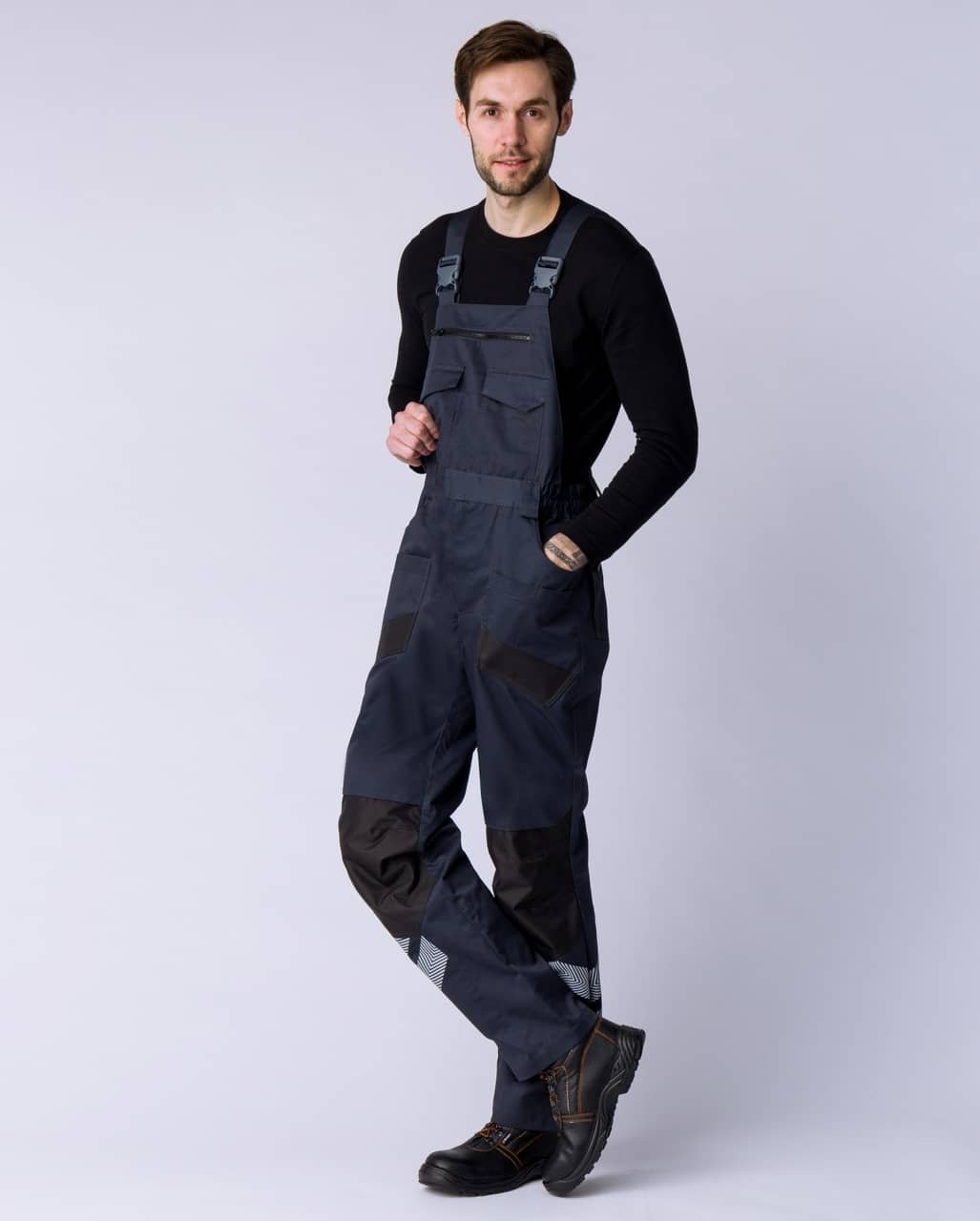 Полукомбинезон мужской рабочий «PROFLINE SPECIALIST» изготовлен в соответствии с ГОСТ для защиты от общих производственных загрязнений и механических воздействий. Оснащен множеством рабочих карманов. Объемные боковые карманы и специальный карман на бедре усилены прочной тканью от возможных порезов и предназначены для хранения инструмента. Многозональные карманы на бедрах, задние карманы на липучке и карман на груди могут использоваться для размещения крепежа и записей. Благодаря усиленным наколенникам и возможности размещения в них вставки из ЭВА униформа предназначена для длительной работы на коленях и в неудобных позах. Для работы в жаркое время года и при высоких температурах предусмотрена спинка из 3D сетки, обеспечивающая циркуляцию воздуха и комфортное состояние мастера. Бретели регулируются по длине, в поясе предусмотрена резинка.