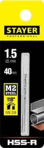 STAYER HSS-R, 1.5 х 40 мм, быстрорежущая сталь P6M5, сверло по металлу, Professional (29602-1.5)