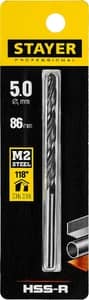STAYER HSS-R, 5.0 х 86 мм, быстрорежущая сталь P6M5, сверло по металлу, Professional (29602-5)