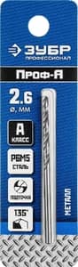 ЗУБР ПРОФ-А, 4.0 х 75 мм, сталь Р6М5, класс А, сверло по металлу, Профессионал (29625-4)