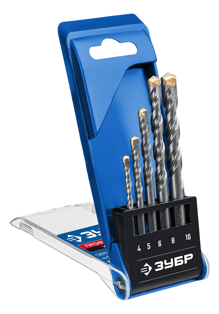 ЗУБР 5 шт: d 4-5-6-8-10 мм, трехгранный хвостовик, набор сверл по бетону усиленных, Профессионал (2916-H5)