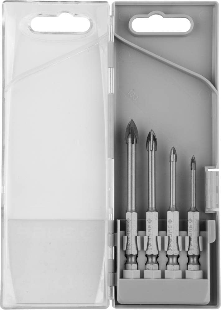 Набор ЗУБР "ЭКСПЕРТ": сверла по кафелю и керамике с четырьмя режущими лезвиями, пластиковый бокс, 3, 4, 6, 8мм, 4шт