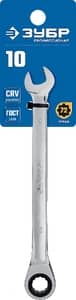 ЗУБР 10 мм, комбинированный трещоточный гаечный ключ, Профессионал (27074-10)