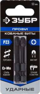 ЗУБР PZ3, 2 шт, PZ3, 50 мм, ударные биты, Профессионал (26023-3-50-S2)
