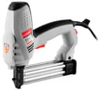 Конструкция пистолета позволяет забивать как скобы, так и гвозди Запас скоб и гвоздей в комплекте Гарантия 5 лет Емкость магазина: 50 шт Масса: 1,6 кг