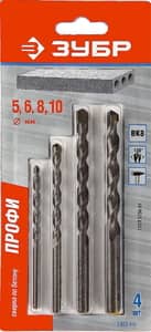 ЗУБР Мастер 4 шт: d 5-6-8-10 мм набор сверл по бетону