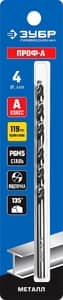 ЗУБР ПРОФ-А, 4.0 х 119 мм, сталь Р6М5, класс А, удлиненное сверло по металлу, Профессионал (29624-4)