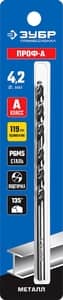 ЗУБР ПРОФ-А, 4.2 х 75 мм, сталь Р6М5, класс А, сверло по металлу, Профессионал (29625-4.2)
